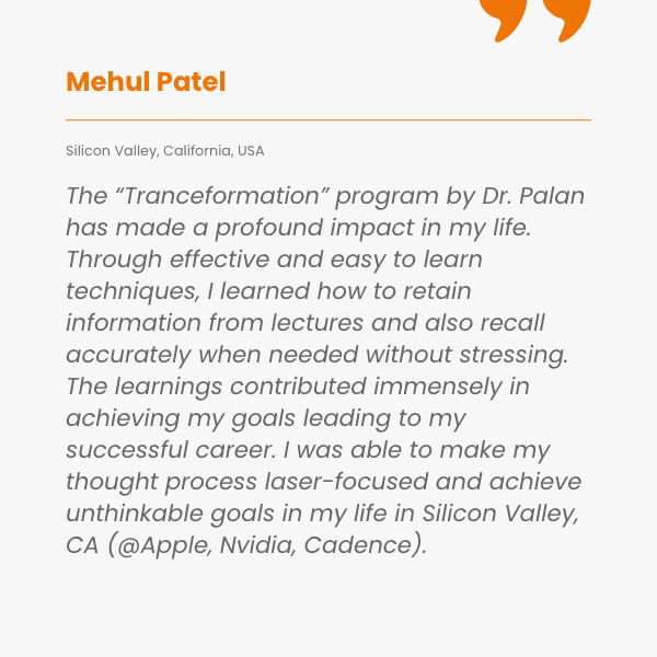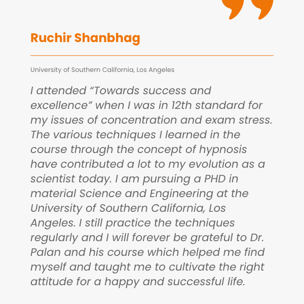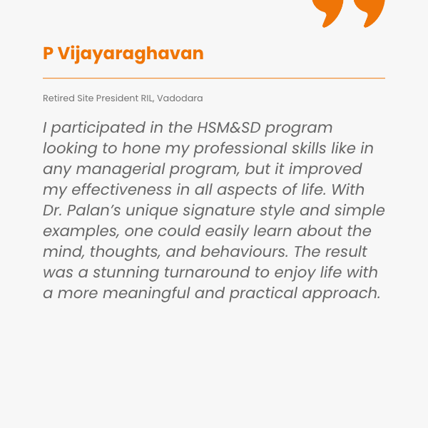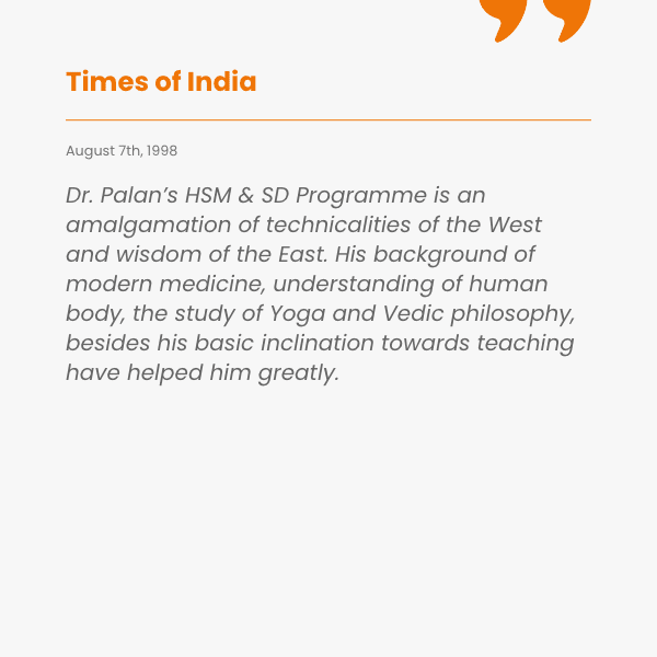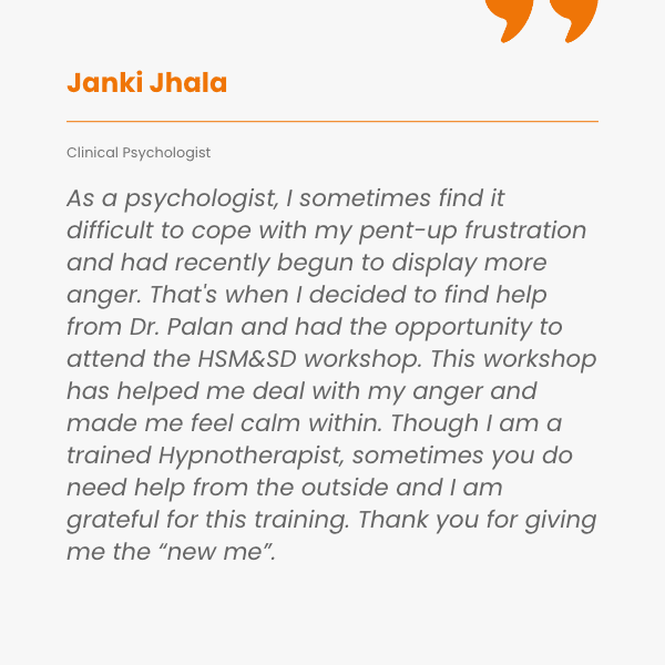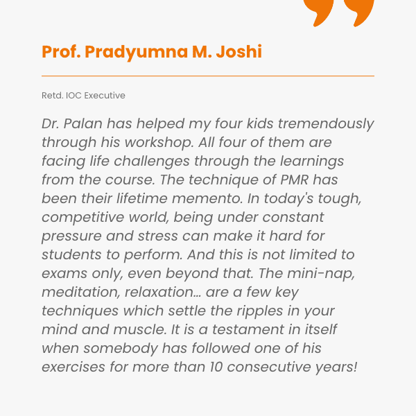 Dr. Palan helped create a one-year P.G. Diploma course in Clinical and Applied Hypnosis at M.S. University, Baroda. He also created an Online P.G. Diploma course in Clinical Hypnosis at CHARUSAT. Over the last 30 years, he has developed various stress management & self-development programs, which have helped more than 50,000+ people so far, nationally & internationally.